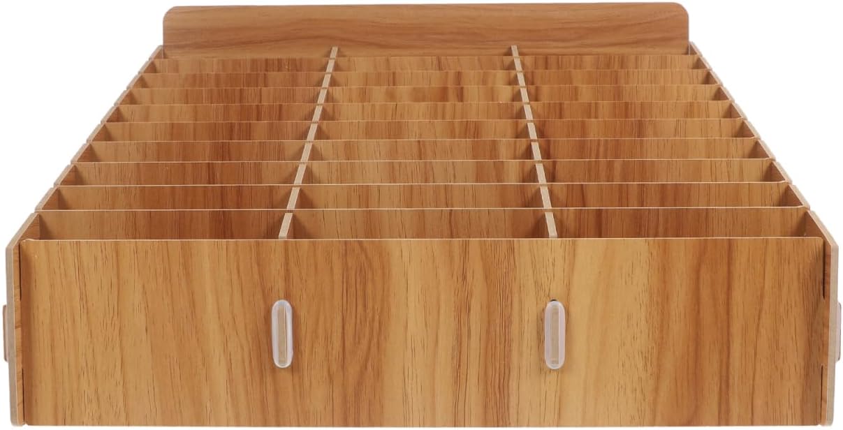 1 x Storage Box for Mobile Phones Wood with Compartments for Office and School Organiser for Phone and Accessories Rack for Mobile Display