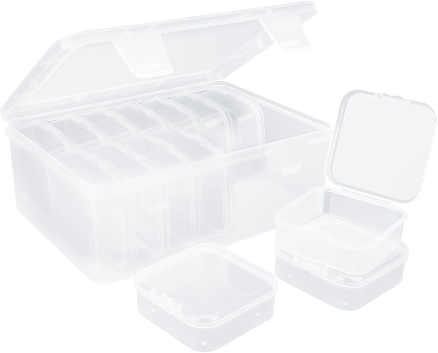 14 Mini Boxes (5.5 x 5.5 x 2 cm) + 1 Small Storage Box – Bead Organiser, Embroidery Thread & Sticker Sorting Box for Jewellery, Piercing, Ironing Beads, Ball Organiser or Craft Box with Hinged