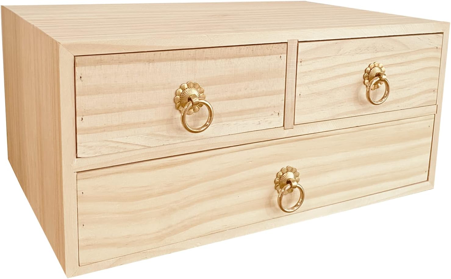 - Size: Outside size approx.34.5x24x16cm/13.6”x9.4”x6.3”. Inside size one large drawer box approx.31x22x5.5cm/12.2”x8.7”x2.2”, two small drawers approx.22x14x5.5cm/8.7”x5.5”x2.2”. Thickness: 9mm.