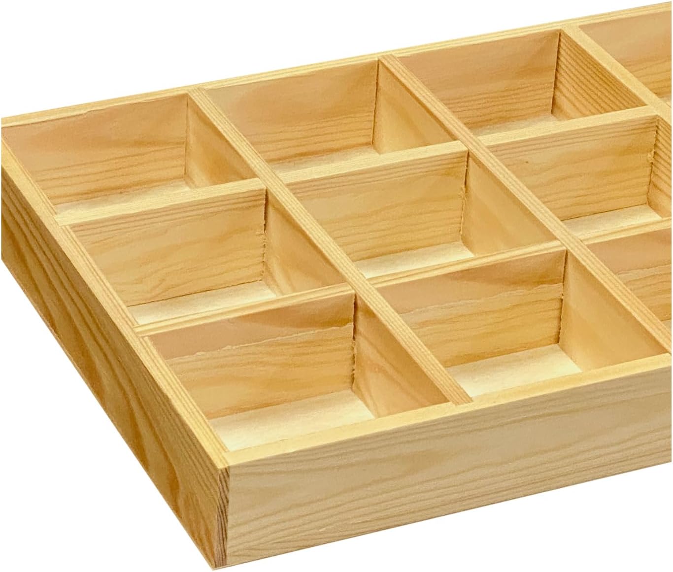 2 Pack Wooden Sorting Tray Grid Display Wood Divided Organizer Vanish Finished Section Box (12 Compartments,12.9 x 9.1 x 1.55 Inch Each Tray)