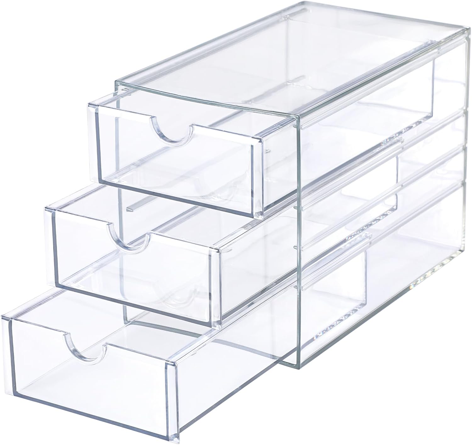 3 Drawers Acrylic Drawer Organizer Clear Desktop Organizer for Hair Accessories Jewelry Stationery Office Supplies Acrylic Drawer Storage Box for Vanity Bathroom Closet
