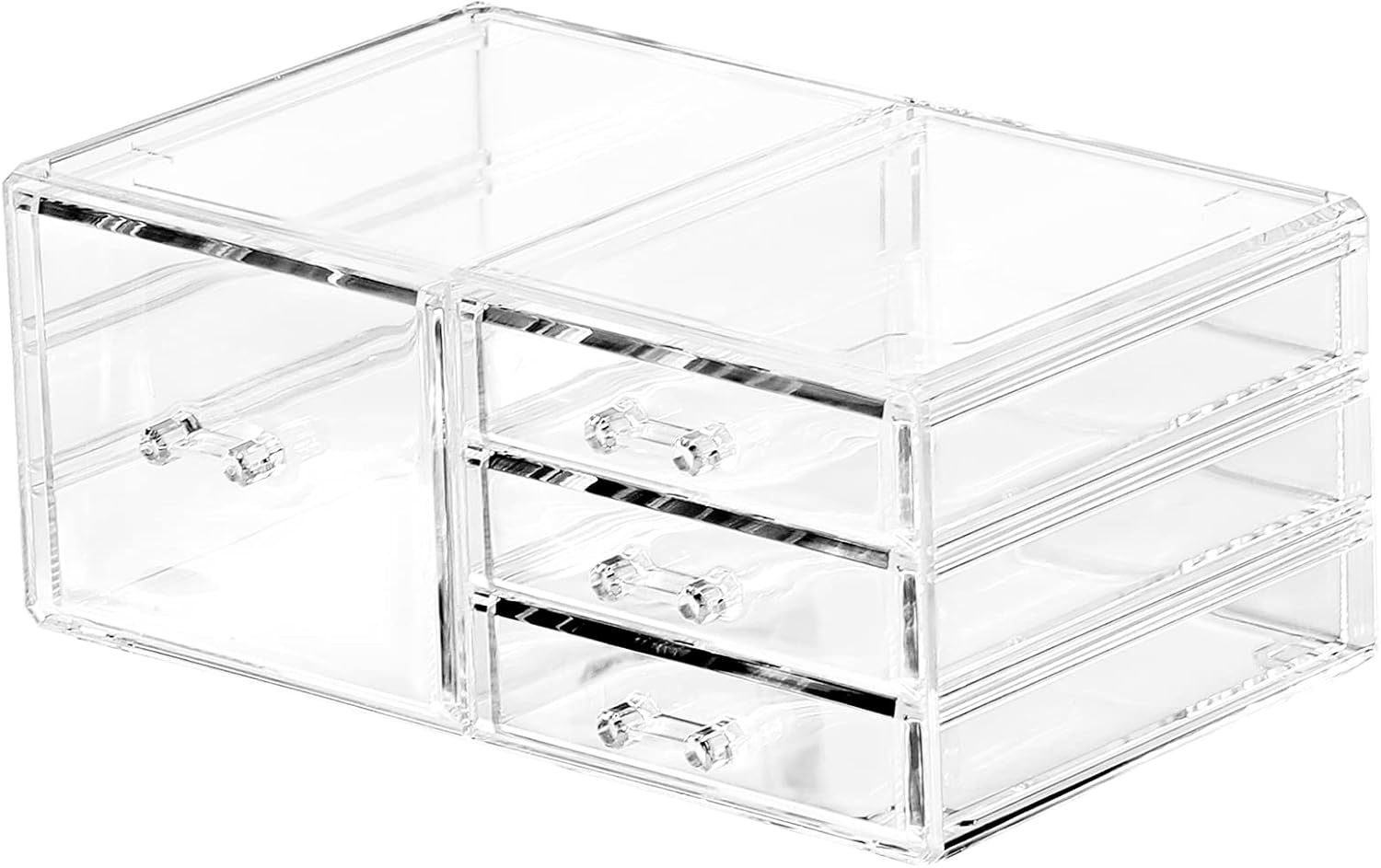 - 【Multifunctional stacking drawer organizer】 – Design of drawers of different sizes makes it a perfect organization bin for storing lotion,skin care,essence, facial cleanser, lipsticks, makeup palettes, eye shadows, concealers, and other skin care products, cosmetics,toiletries makeup,lipstick,toolbox,office supply,pen,craft,stationery,and hair clip accessory clear acrylic storage bins
