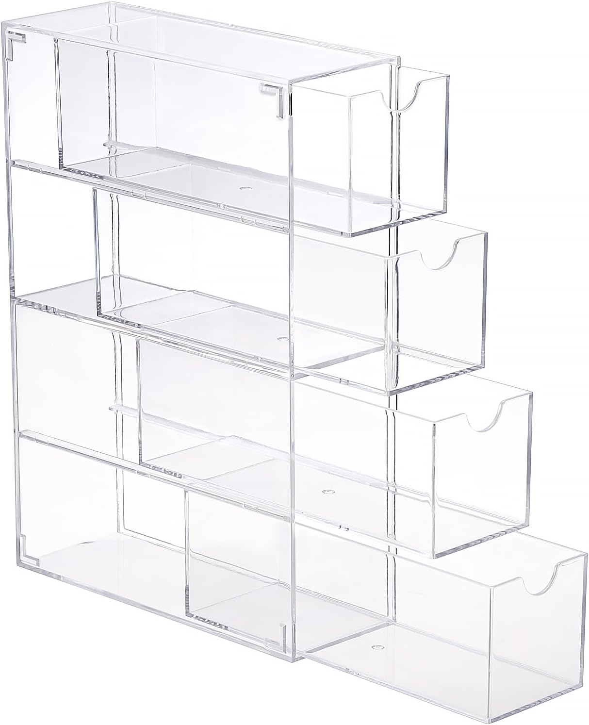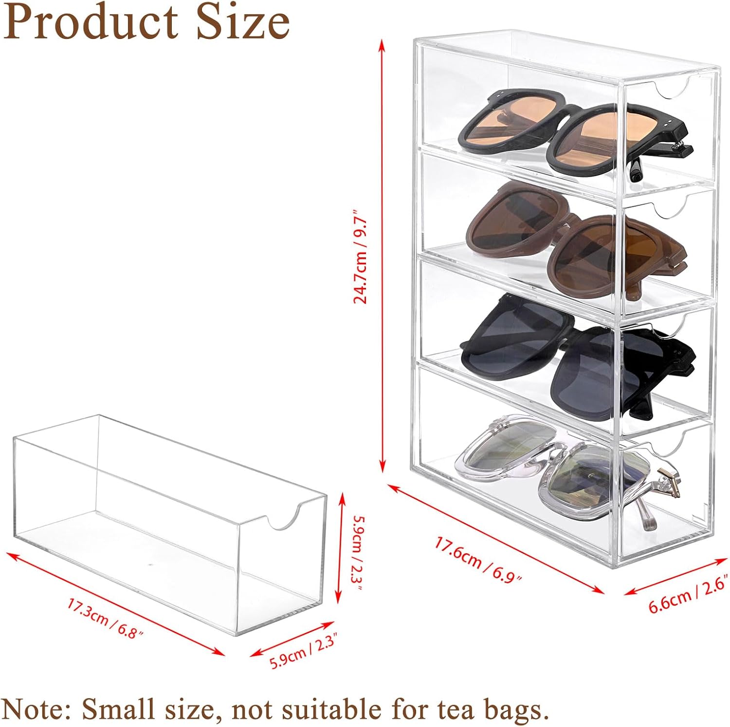 Acrylic Drawer Organizer Glasses Case Multiple Pairs Clear Desktop Drawers Box with 4 Pull Out Drawers Sunglasses Display Case Eyeglass Storage Organizer for Glasses Jewelry