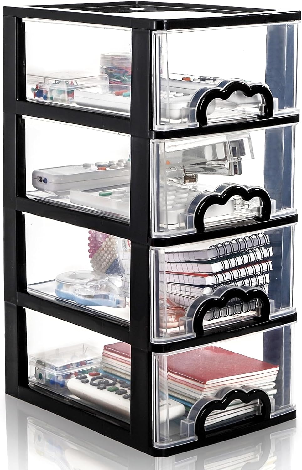 - Ample Storage Space: Our 4 drawer desktop organizer measures 6.5″L x 9″W x 14.6″H, spacious storage space for a variety of uses and different use scenarios, in addition to drawers, the upper open shelf provides extra space for small items
