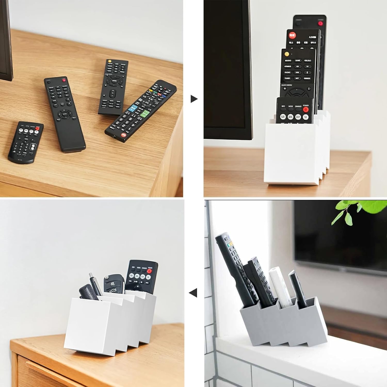 - Remote Control Holder, 2 Pack, Grey+White, Silicone Storage Box with 4 Compartments for TV, DVD Remotes, Desk Organizer for Office, Pens
