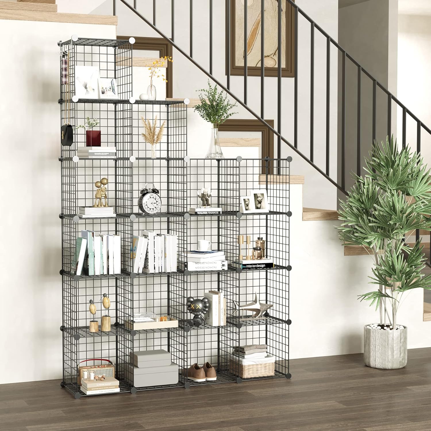 - MULTIFUNCTION: Multifunctional metal storage has a modern industrial an ideal choice to your living room, bedroom, corridor or kitchen etc.Perfect as a storage rack for clothes, books, shoes, toys, bags, artcrafts, potted plants,ball of wool and other necessities.Within the number of panels, you can also install a pet fence to give your pet a home