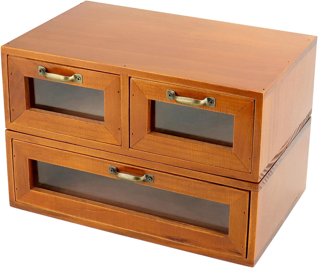 Wooden Box Organizer, Wood Desktop Storage Cabinet with 3 Drawers, Dark Brown